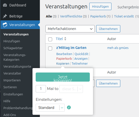 1. Bestehende Veranstaltung kopieren (mehrfach)