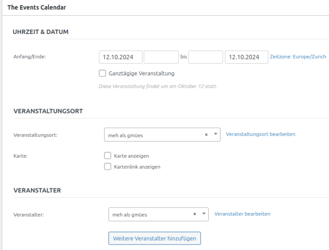 öffentliche Veranstaltungen werden direkt in Wordpress verwaltet. Falls du Zugang benötigst, kontaktiere die IT.